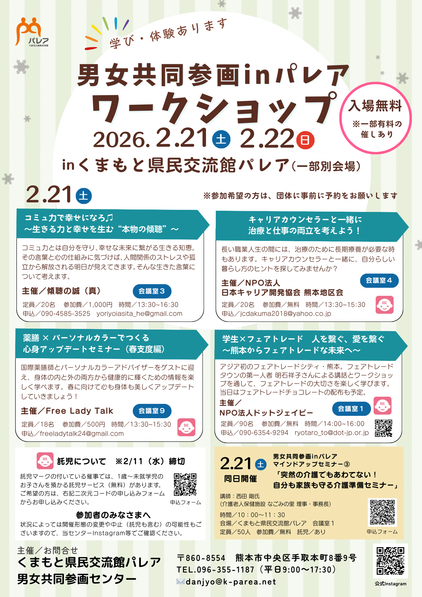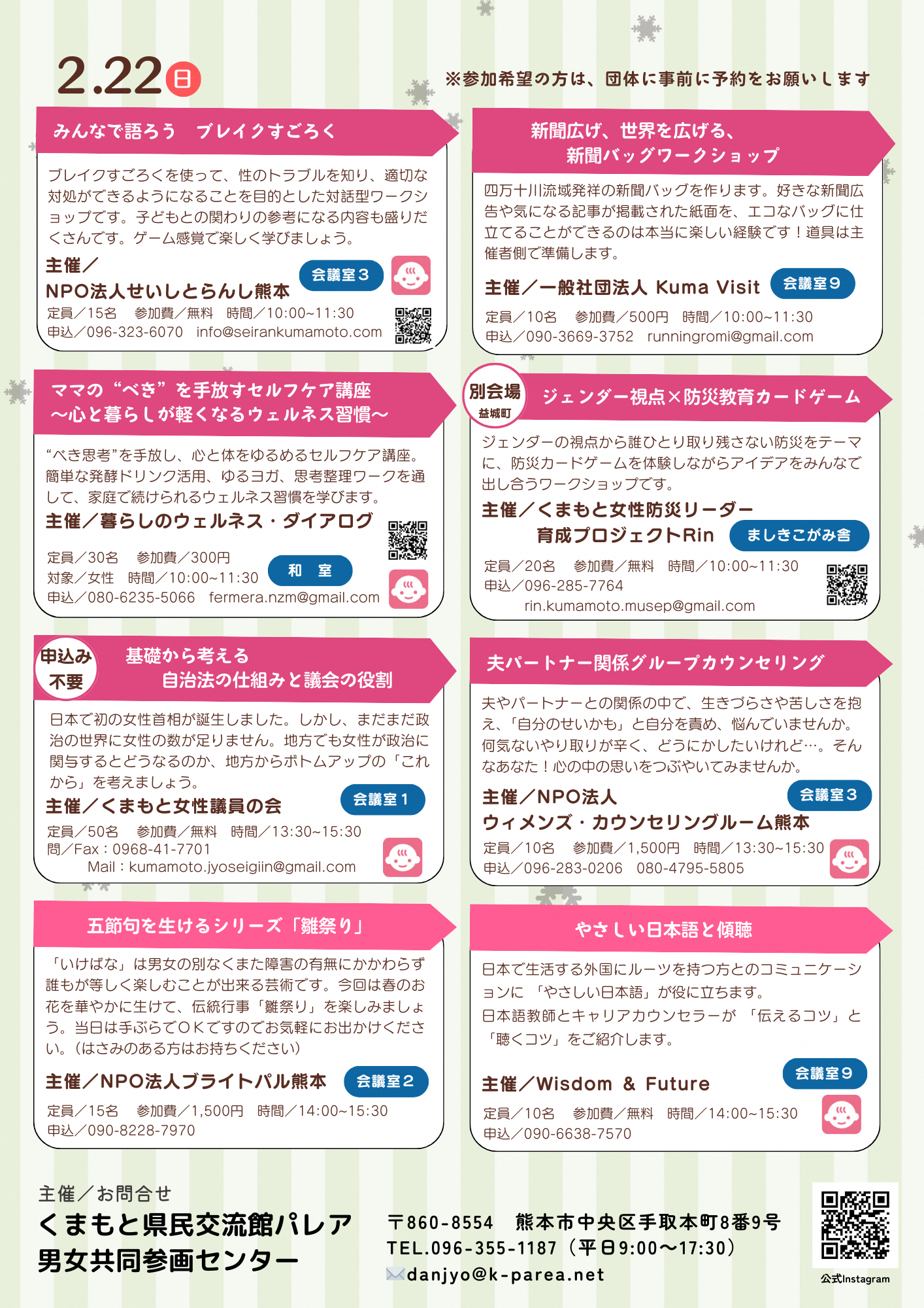 ※現在、パレアのホームページが利用できません。また、男女共同参画センターではお申し込みの受付はできません。
